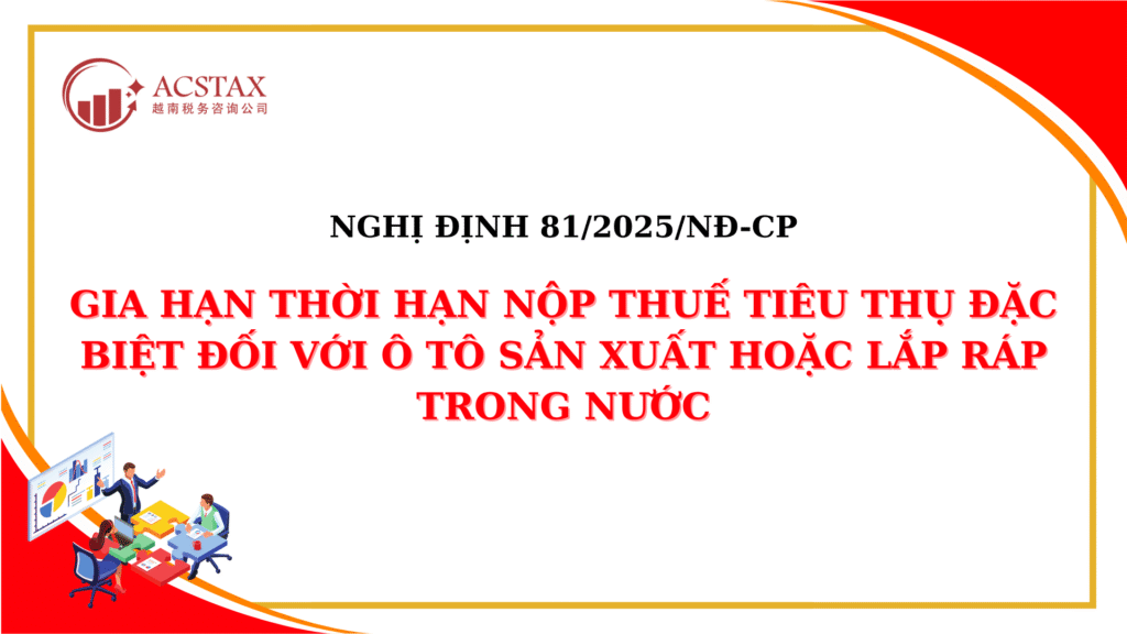 Nghị định 81/2025/NĐ-CP gia hạn thời hạn nộp thuế tiêu thụ đặc biệt đối với ô tô sản xuất hoặc lắp ráp trong nước CHÍNH PHỦ _______ Số: 81/2025/NĐ-CP CỘNG HÒA XÃ HỘI CHỦ NGHĨA VIỆT NAM Độc lập – Tự do – Hạnh phúc ________________________ Hà Nội, ngày 02 tháng 4 năm 2025 NGHỊ ĐỊNH Gia hạn thời […]