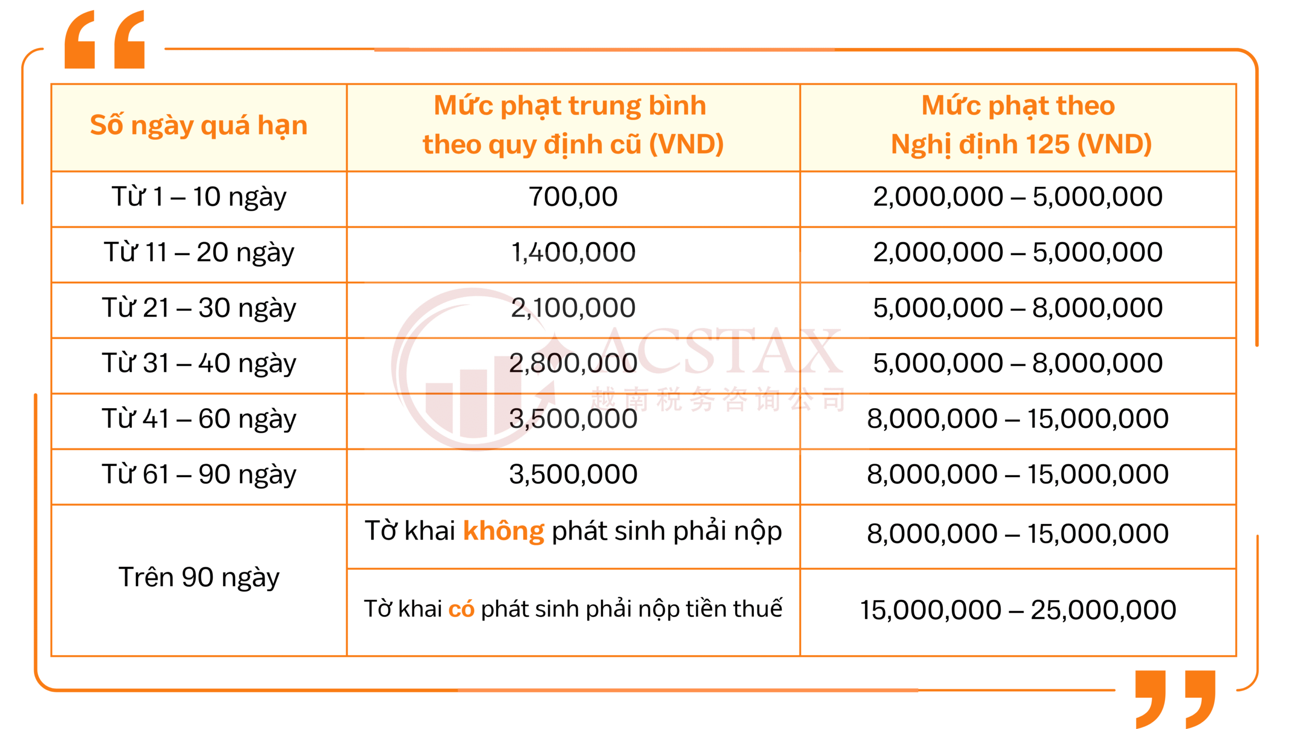 + Mức phạt khi nộp chậm tờ khai thuế GTGT (theo Nghị định 125/2020/NĐ-CP)